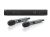 The XSW 1-825 Dual-Vocal Set with Two 825 Handheld Microphones from Sennheiser includes an EM-XSW 1 dual stationary receiver with internal antennas, two SKM XSW transmitters with mute switches, two MZQ 1 microphone clips, an NT 12-5 CW power supply, and f