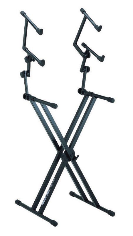 Professional heavy duty, double-brace "X" stand with height /tilt adjustable second and third tier.